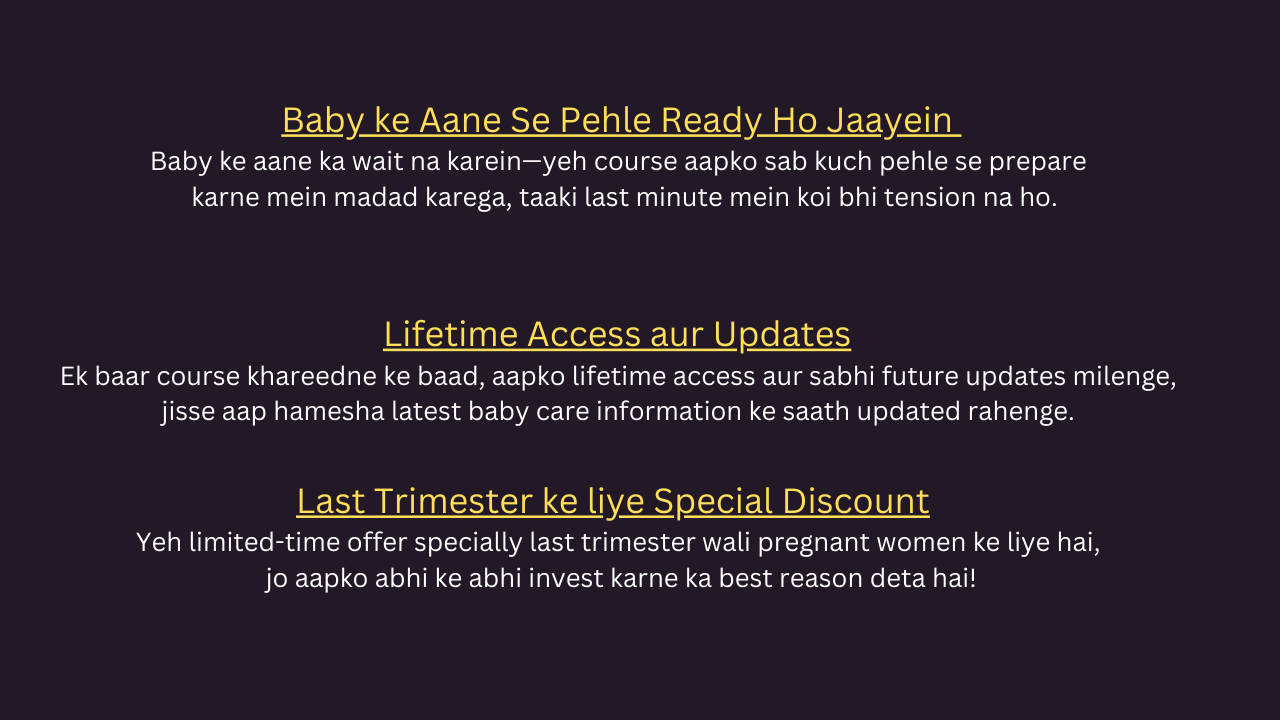 Mujhe pehle bohot darr lagta tha ki main apne baby ka achhe se khayal rakh paungi ya nahi, par is course ne meri sari worries door kar di. Feeding se lekar health tips tak, sab kuch step-by-step bataya hai. Iski simplicity mujhe bohot pasand aayi.