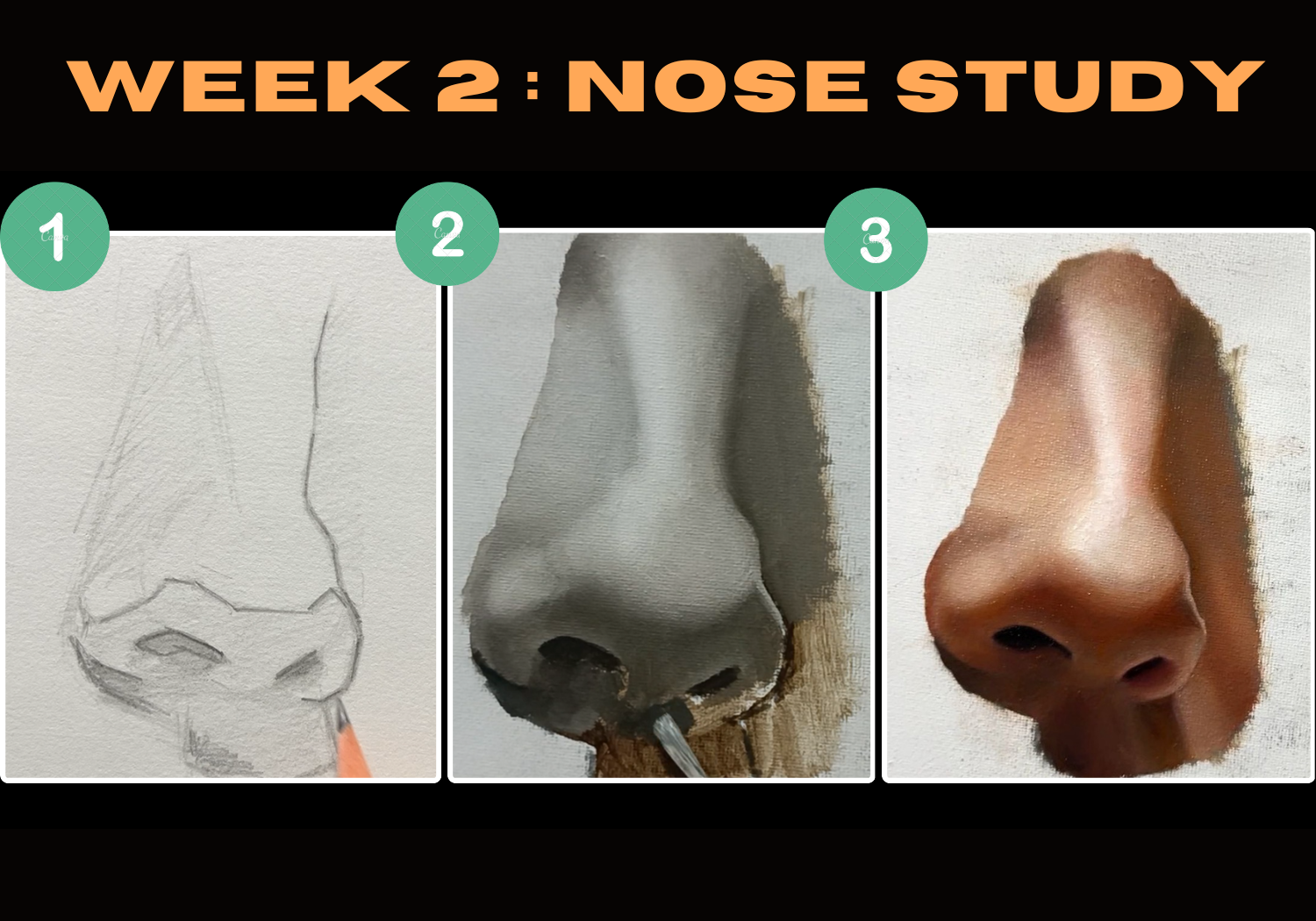 Specific colors that I have used for this program are: Titanium White, Yellow Ochre, Cad Orange, Crimson Lake, Raw Umber & Ivory Black.
