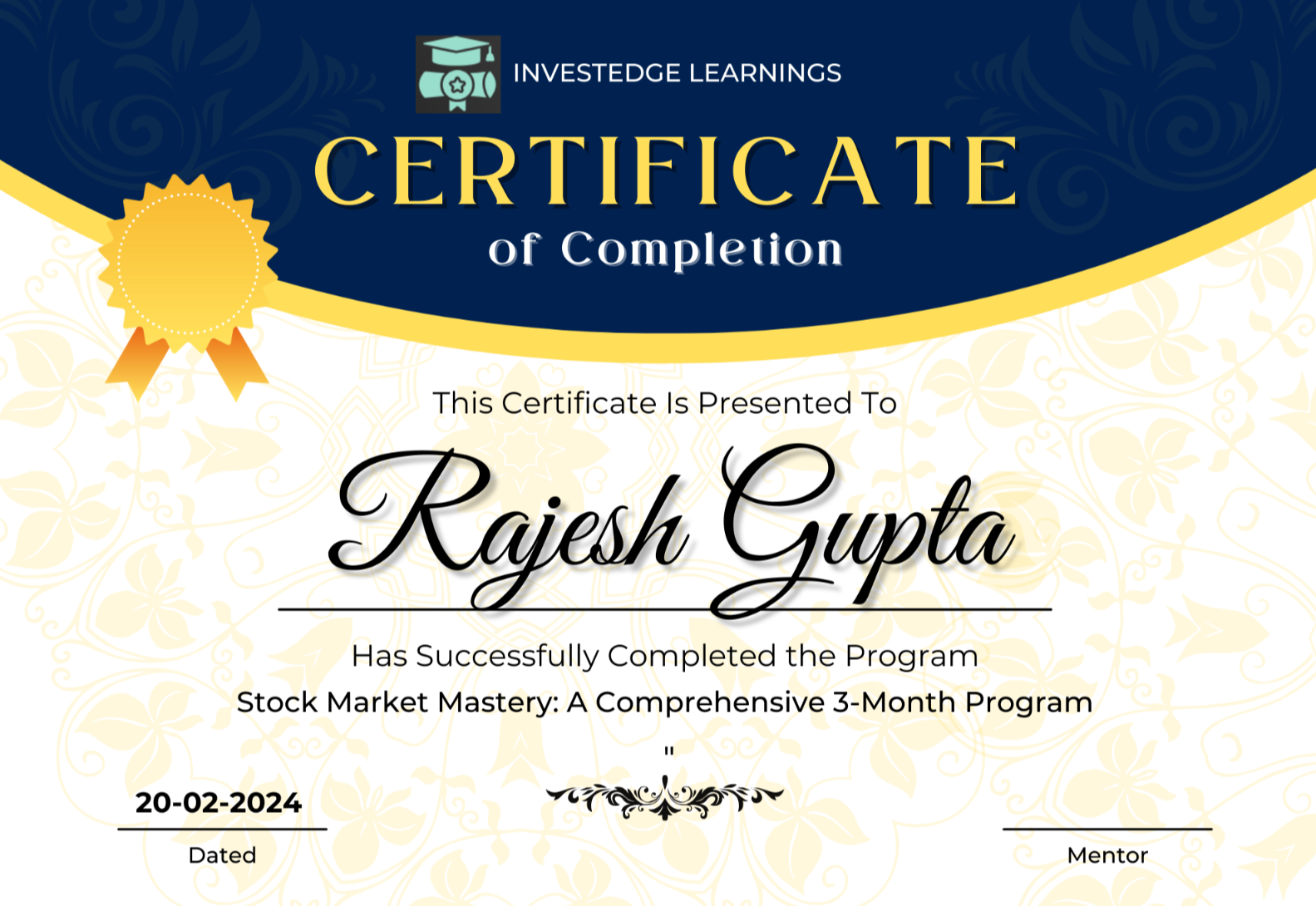 Get a certificate from INVESTEDGE LEARNINGS once you have completed this COURSE on your email! The certificate will help you TO