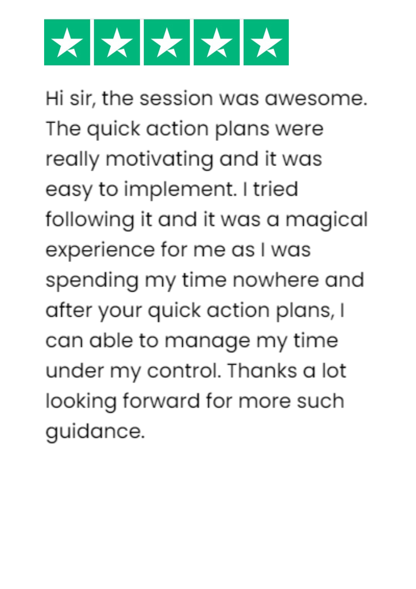 You might be stuck in the loop of 9 to 6 jobs but you feel there is no time to work towards your goals or spend time with family. This masterclass can help you to reveal the minutes/hours you are spending unknowingly unproductively.