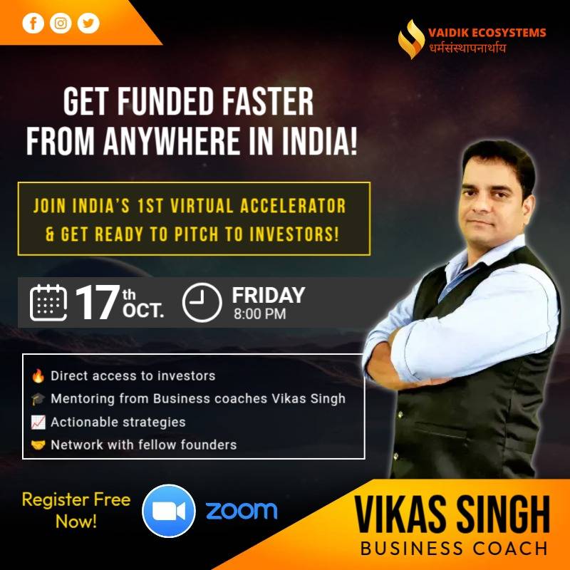 Vikas Singh is an 'Indian Entrepreneurship, Leadership, Wealth Generation Coach' Author and Speaker. He is the Founder of Vaidik Ecosystems Pvt. Ltd. He has coached thousands of startups. He is a leading business coach and consultant.
